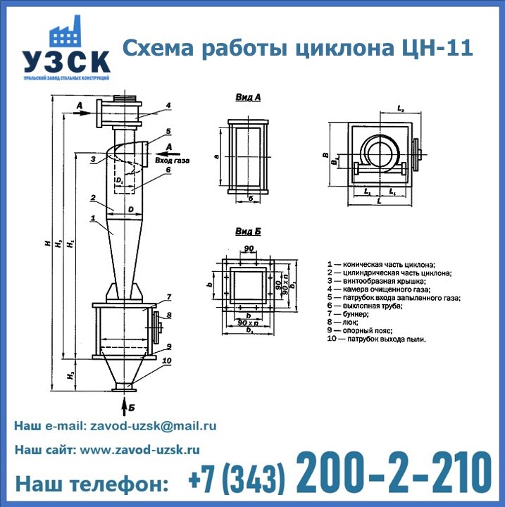 При этом ощутимой разницы в цене между универсальным и узконаправленным, подобранным в соответствии с конкретными техническими требованиями циклоном, нет. Стоимость воздухоочистительного оборудования типа циклон обусловлена маркой и толщиной стали, из которого он изготовлен, сложностью и специфичностью конструкции, наличием дополнительного оснащения (бункер, улитка и другие). При необходимости, на заводе УЗСК в Кентау будет изготовлен циклон по индивидуальным техническим чертежам заказчика.