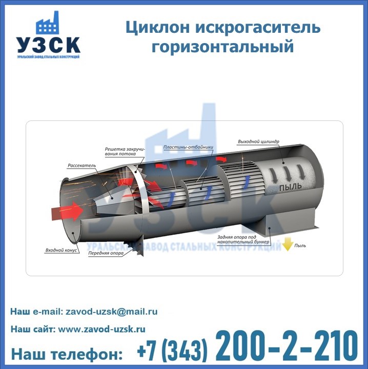 Монтаж циклона-искрогасителя ЦГ должен осуществляться непосредственно к горизонтальному вентиляционному каналу на входе в систему фильтрации и аспирации. Заказать изготовление по индивидуальному техзаданию или купить готовый циклон-искрогаситель ЦГ на заводе УЗСК в Кентау можно, оставив заявку прямо на сайте или позвонив по указанному телефону, уточнив все детали касательно продажи оборудования.