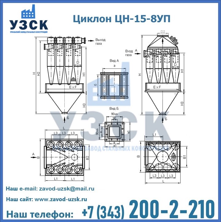 Завод «УЗСК» в Кентау предлагает большой выбор циклонов ЦН-15-500×8УП и прочих устройств, полностью укомплектованных и готовых к эксплуатации. Мы гарантируем соответствие оборудования всем требованиям ГОСТ и ТУ, износостойкость и высокую производительность предлагаемого оборудования. Уральский Завод Стальных Конструкций изготавливает и продает надежное, эффективное и производительное оборудование, имеющее длительную гарантию и большой эксплуатационный ресурс. Если требуется изготовить циклон нестандартных размеров, то такой вариант выполнения заказа тоже предусмотрен, так как предприятие имеет собственные производственные площади и надежных поставщиков. На все поставляемое или производимое оборудование имеются чертежи и прочая техническая документация. Заказать и купить циклоны или прочее оборудование высокого качества и по доступной цене можно через наш сайт или по указанному в разделе «Контакты» телефону.