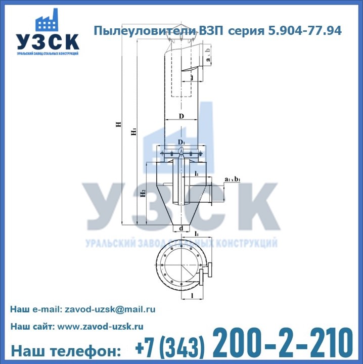 Завод «УЗСК» предлагает большой выбор циклонов и прочих устройств, полностью укомплектованных и готовых к эксплуатации. Мы гарантируем соответствие оборудования всем требованиям ГОСТ и ТУ, износостойкость и высокую производительность предлагаемого оборудования. Заказать и купить циклон-пылеуловитель ВЗП серия 5.904-77.94 можно, оставив заявку на сайте Уральского Завода Стальных Конструкций, или позвонив по указанным в разделе «КОНТАКТЫ» телефонам. Цена пылеуловителя формируется исходя из параметров и модели устройства.