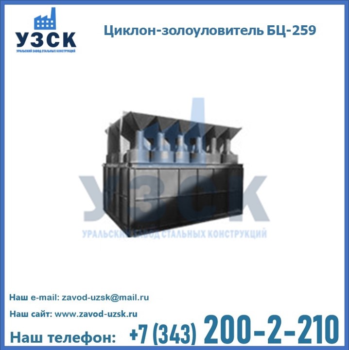 Если вы планируете купить то или иное оборудование, например, циклоны-золоуловители БЦ-259, то рекомендуем заказать данный товар на сайте УЗСК. Мы производим и реализуем продукцию высокого качества по приемлемой цене. Эксперты Уральского Завода Стальных Конструкций в Кентау проконсультируют вас по всем вопросам, помогут сделать выбор и оформить заказ без лишних временных затрат. Мы гарантируем соответствие нашей продукции всем требованиям ГОСТ и ТУ, а также износостойкость и высокую производительность предлагаемого оборудования. Если требуется изготовить циклон нестандартных размеров, то такой вариант выполнения заказа тоже предусмотрен, так как предприятие имеет собственные производственные площади и надежных поставщиков. На все поставляемое или производимое оборудование имеются чертежи и прочая техническая документация. Заказать и купить циклоны или прочее оборудование высокого качества и по доступной цене можно через наш сайт или по указанному в разделе «Контакты» телефону.