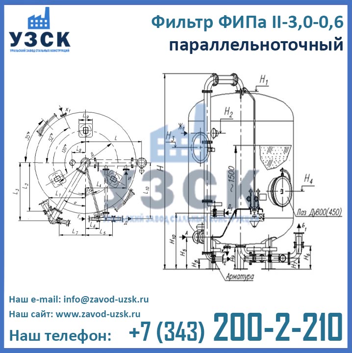 Актуальные цены на ФИПаII-3,0-0,6 в Кентау Вы можете уточнить в отделе продаж Уральского Завода Стальных Конструкций (производитель ионитных фильтров), для этого заполните форму заказа внизу страницы.