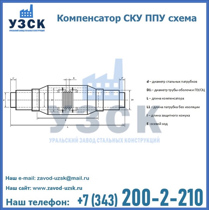 Уральский Завод Стальных Конструкций в Кентау предлагает готовые изделия, а также вы можете приобрести компенсатор СКУ ППУ под заказ. Наш завод располагает всем необходимым оборудованием для производства нестандартных позиций компенсатора СКУ в ППУ изоляции. Завод «УЗСК» предлагает большой выбор качественных и надежных компенсаторов СКУ ППУ, полностью укомплектованных и готовых к эксплуатации. Мы гарантируем соответствие нашей продукции всем требованиям ГОСТ и ТУ, износостойкость и высокую производительность. Наше предприятие поставляет и производит оборудование, имеющее длительную гарантию и большой эксплуатационный ресурс. Если вы хотите заказать сильфонные компенсационные устройства СКУ ППУ или другое оборудование с доставкой, наши специалисты помогут рассчитать стоимость транспортных расходов и организуют доставку товара. Вы можете оформить заказ на продукцию на нашем сайте, для этого достаточно заполнить форму обратной связи.