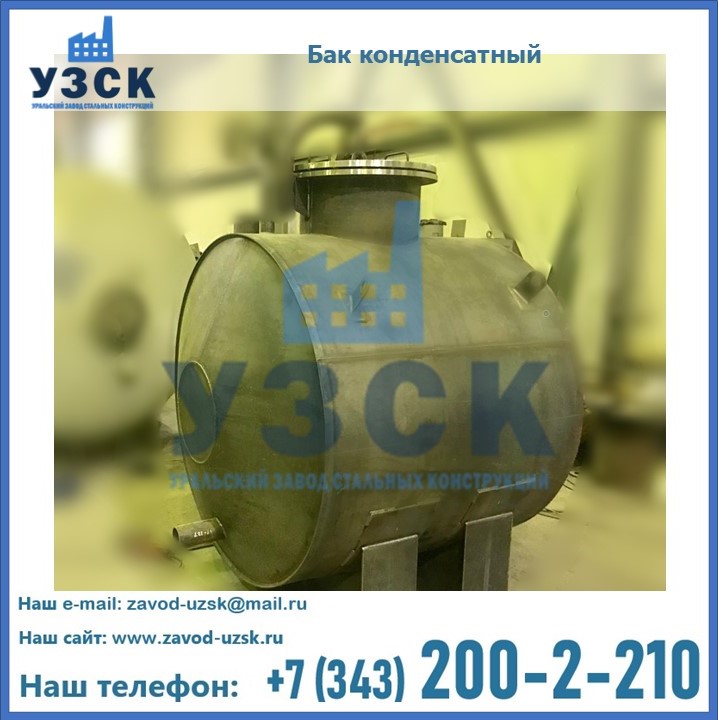 Многие заказчики стараются конденсатные баки купить по выгодной цене в компании «УЗСК» в Кентау. Причин несколько. Производитель поставляет емкости с полным комплектом лестниц, площадок обслуживания. Бак после гидравлических испытаний покрывают специальной внутренней и наружной краской, накладывают теплоизоляцию или наваривают крепеж для навески минматов. Условия теплоизоляции согласуются с заказчиком.