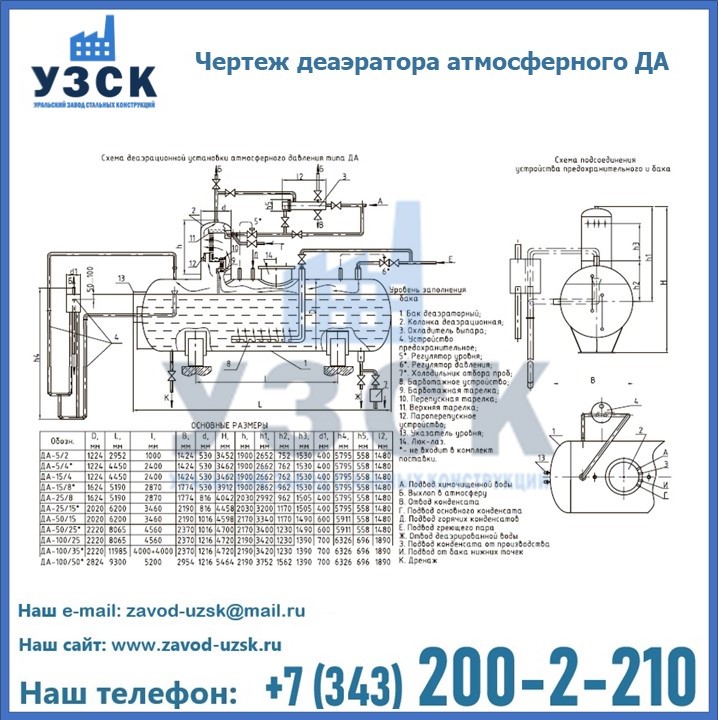 Приобрести качественное оборудование, в том числе, деаэраторы ДА, можно в компании УЗСК в Кентау. Мы предлагаем долговечную и надежную продукцию по приемлемой цене. Заказать и купить деаэраторы или другие изделия высокого качества можно через сайт Уральского Завода Стальных Конструкций, или позвонив по указанному в разделе «Контакты» телефону.